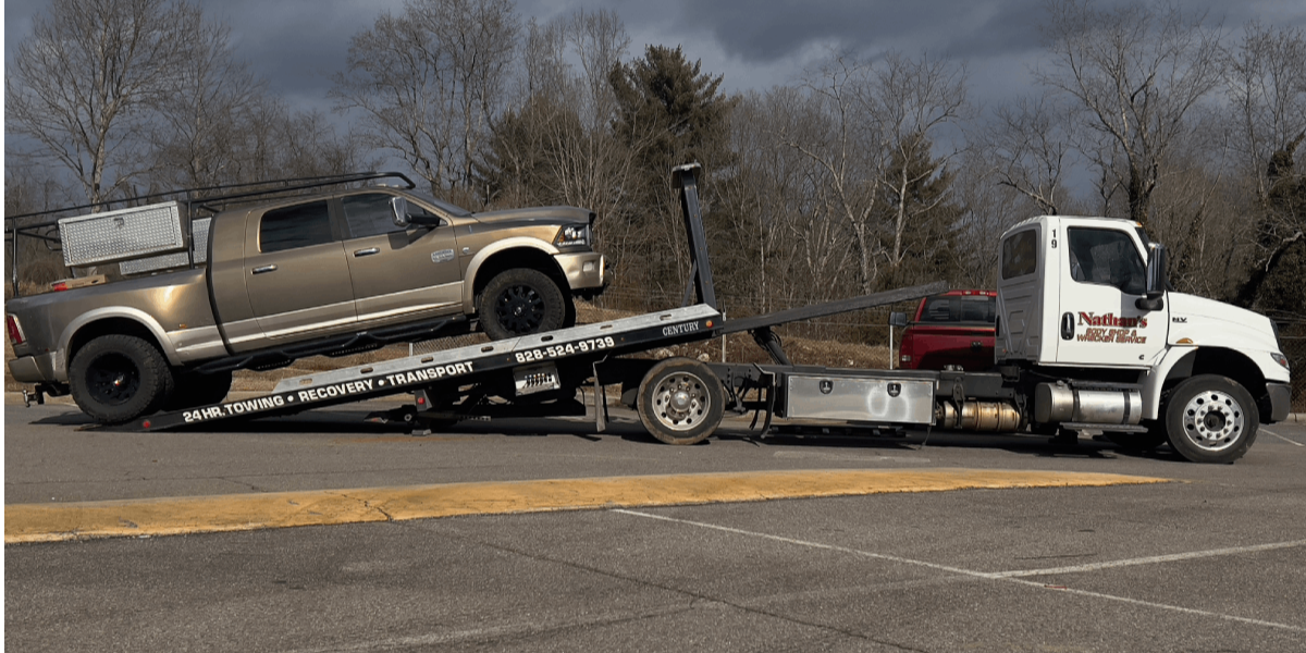 Flatbed Towing in Western NC. Nathan’s Body Shop & Wrecker Service offers fast, secure vehicle transport for all types of vehicles.